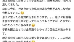 なんG母「息子が第一志望の私立に追加合格したけど学費高いから教えないですw」