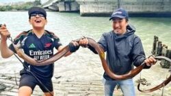 嫌儲福岡の中学生漫湖で3m級のオナガウツボを釣り上げ絶頂😯