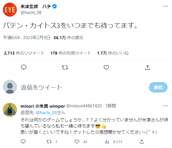 【悲報】米津玄師「バテン・カイトス3待ってる」ファン「何それ?」「知らない」「ゲーム?」