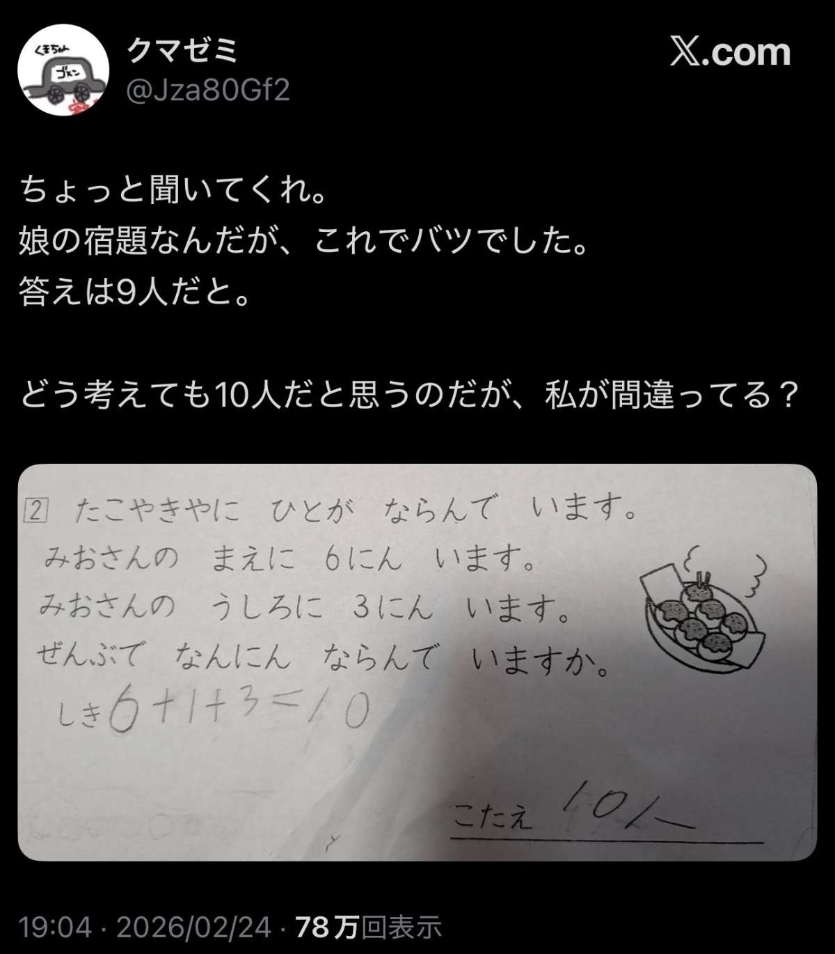 実際にこんな問題があってバツにする教師がおったら子供にどう説明すればいいかわからない