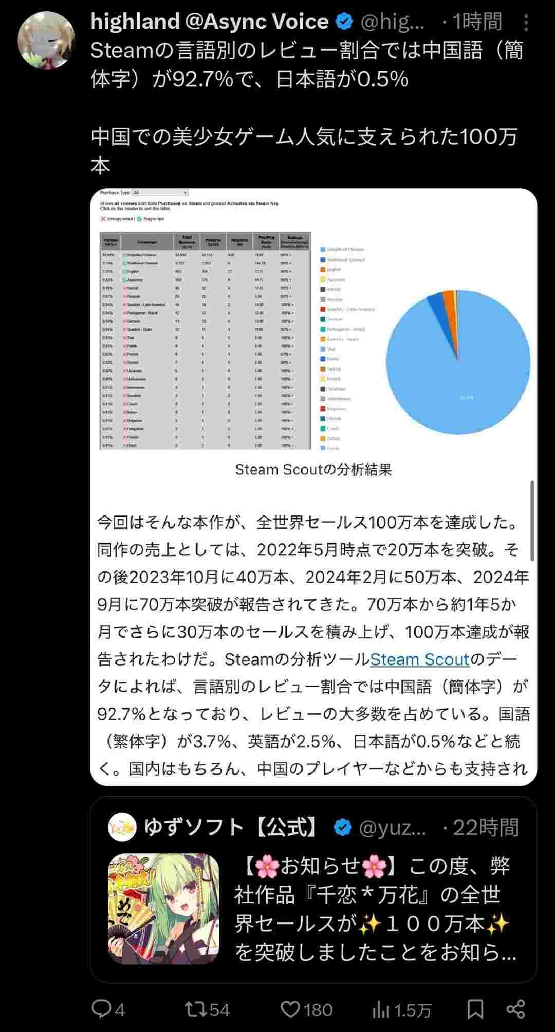 ゆずソフトの千恋*万花、Steamで100万本売れるwww
