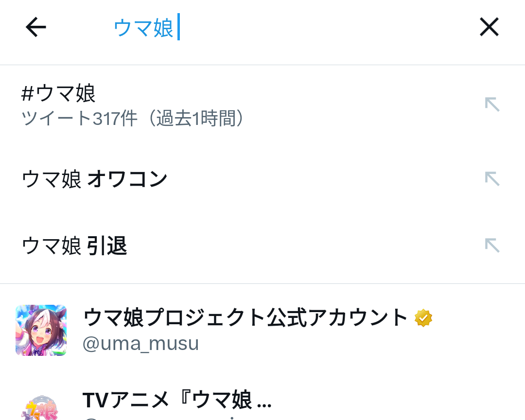 アニメ放送中のウマ娘さん、Twitterで「オワコン」「引退」が無事サジェストされてしまう