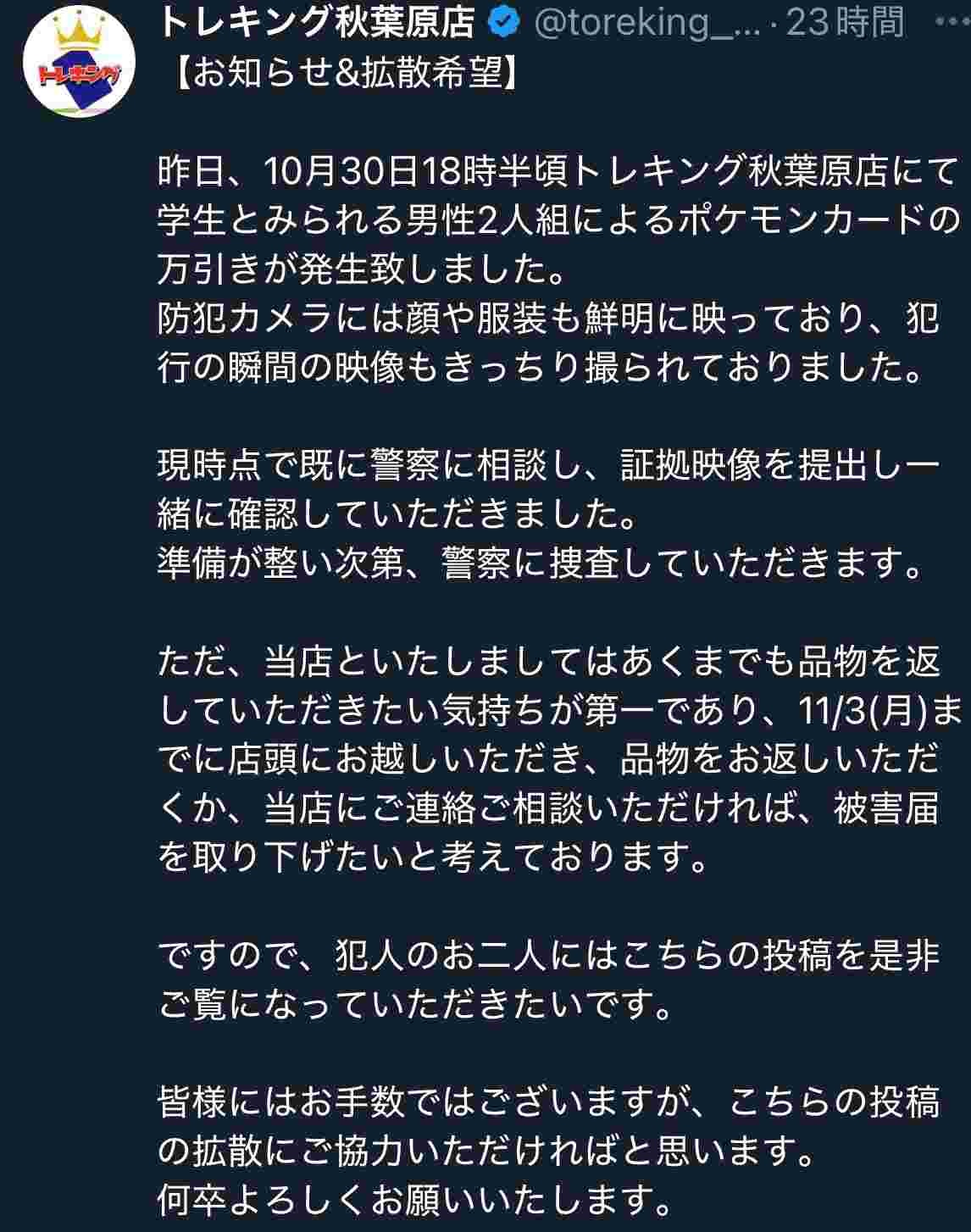 よりによって防犯厳しそうなカードショップ狙うってアホなんやろな