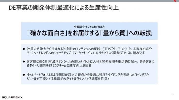 スクエニさん、質より量のゲーム作りをしてたことをついに反省する