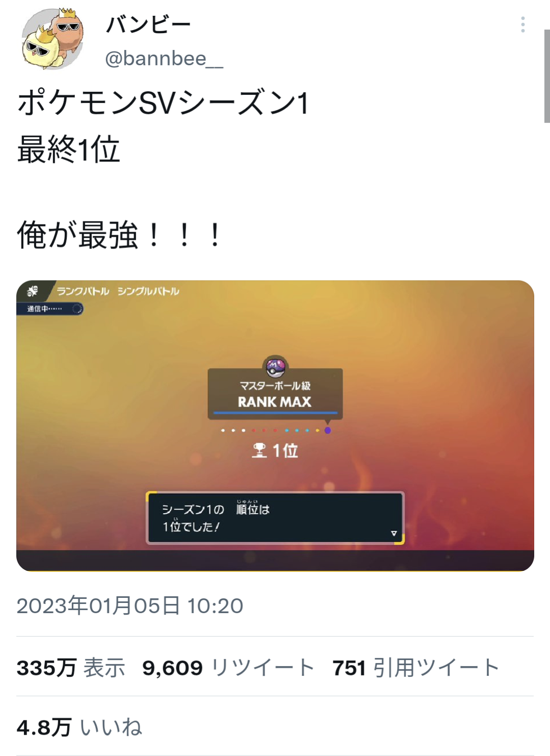 ポケモンSVシーズン1、バンビーが最終一位で終わる