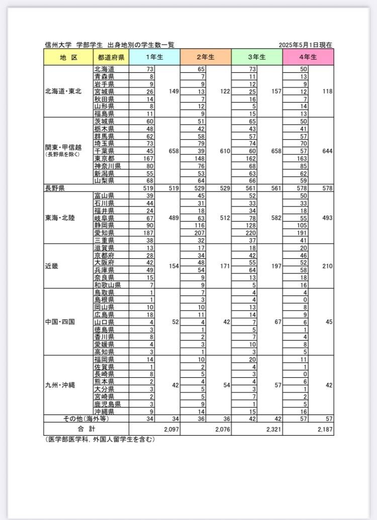ちなみに47都道府県全ての県民が集まる大学はせいぜいこの程度