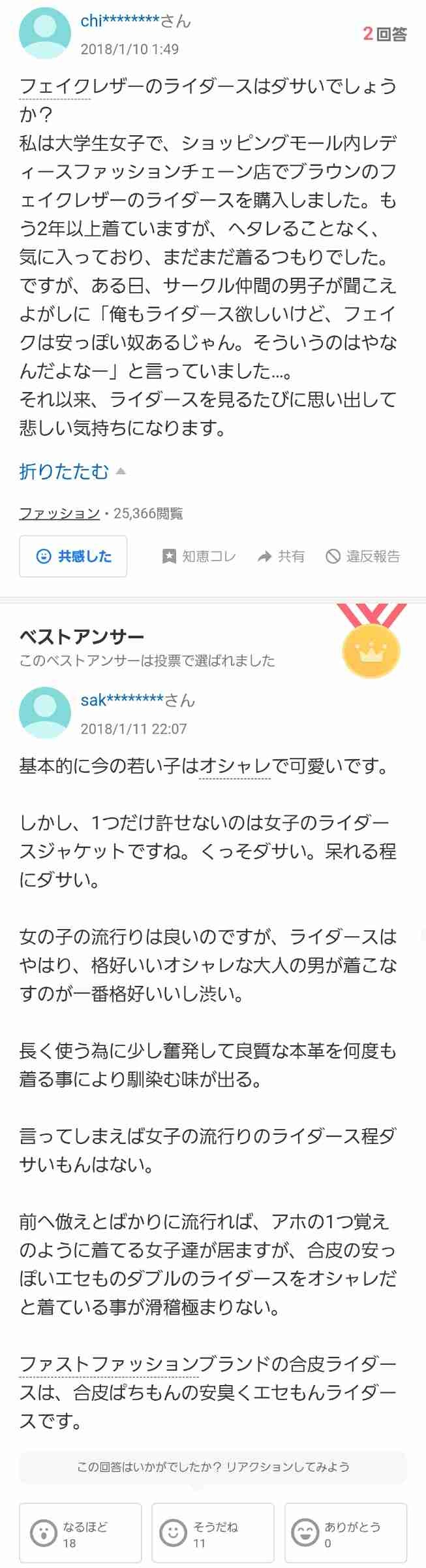 女子大生「フェイクレザーのライダースってそんなにだめですか…?」ライダースおじさん「…ッッ!!」