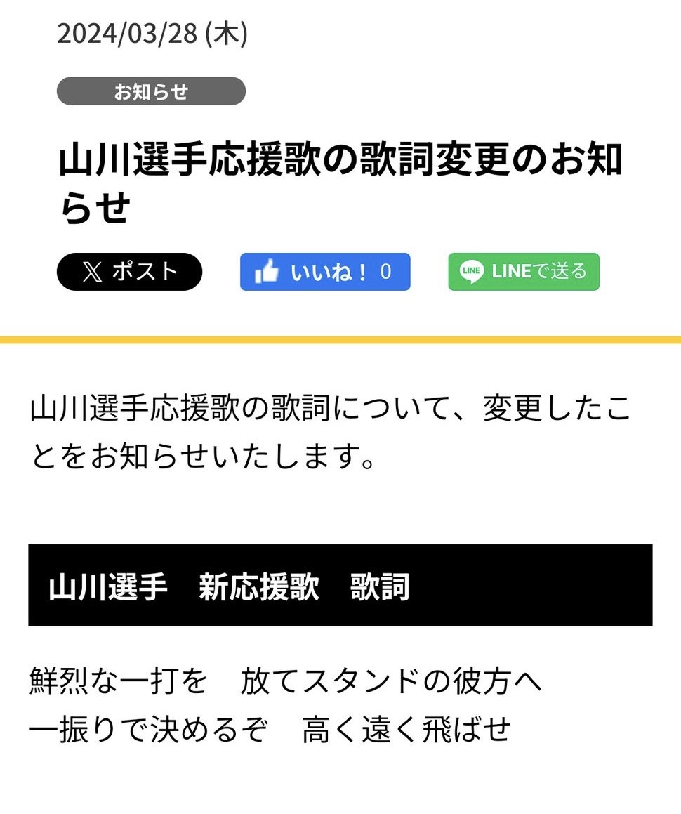 ネットが騒いでも獲得したんだし応援歌もゴリ押せたやろ - 21 名前:番組の途中ですが翡翠の名無しがお送りします 投稿日時:2024/03/28(木) 17:10:54.28 ID:NPsvxt5K0
