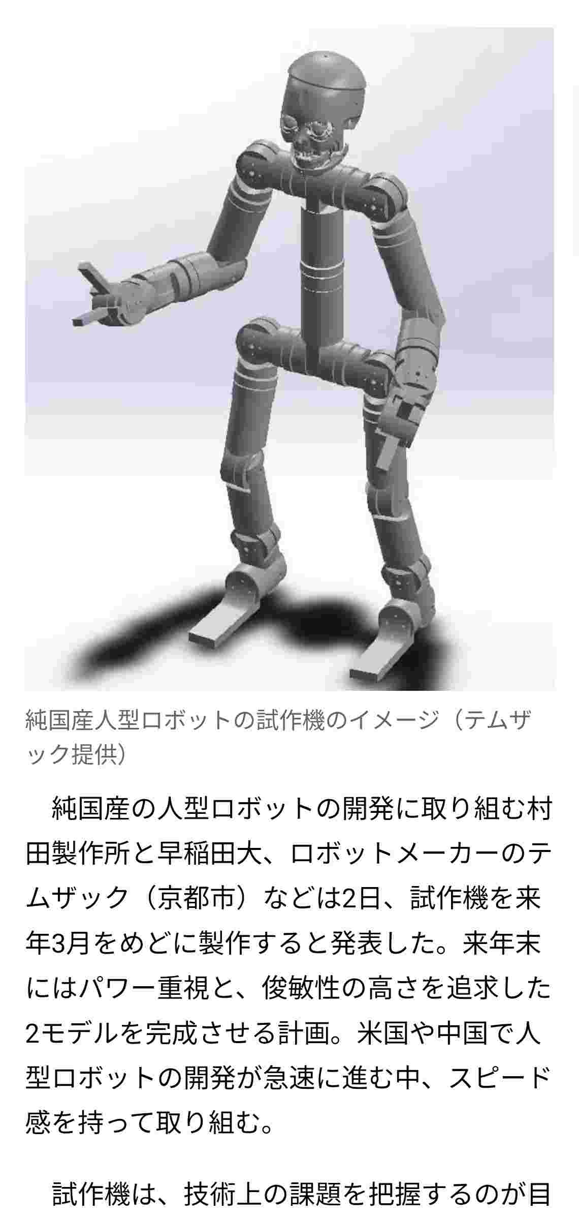 純国産の人型ロボ、来春に試作機 パワー重視と俊敏性の2モデル 村田製作所、早大など