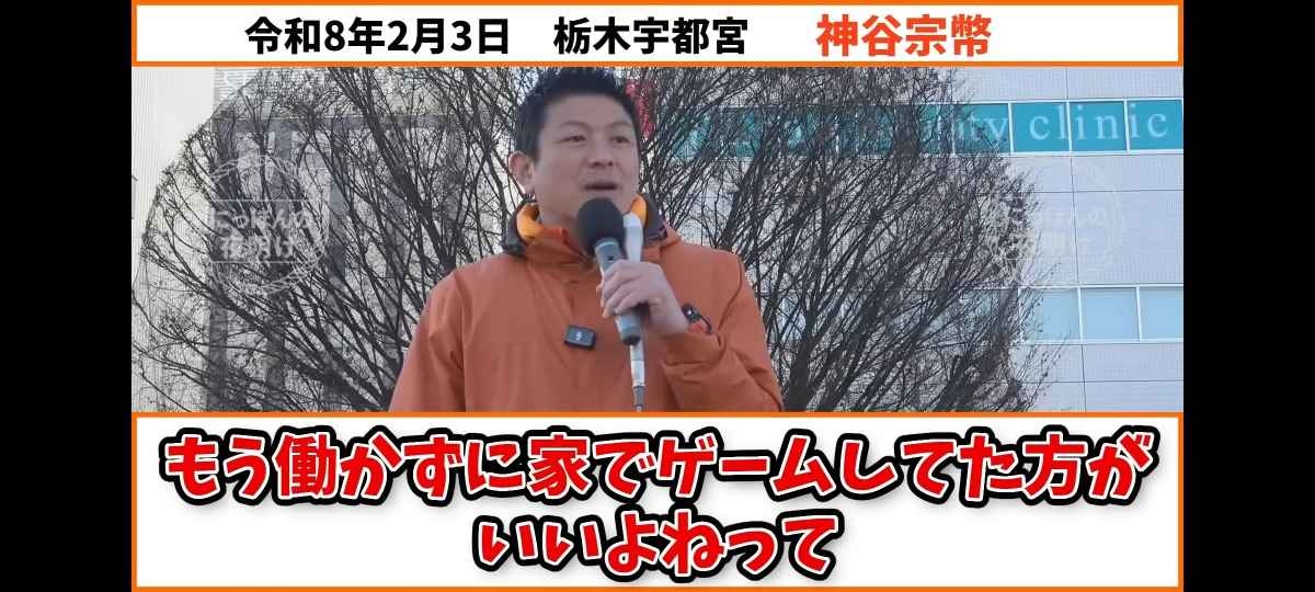 神谷宗幣「働いても手取り十数万だから働かずに生活保護で家でゲームがいいって社会はおかしい」