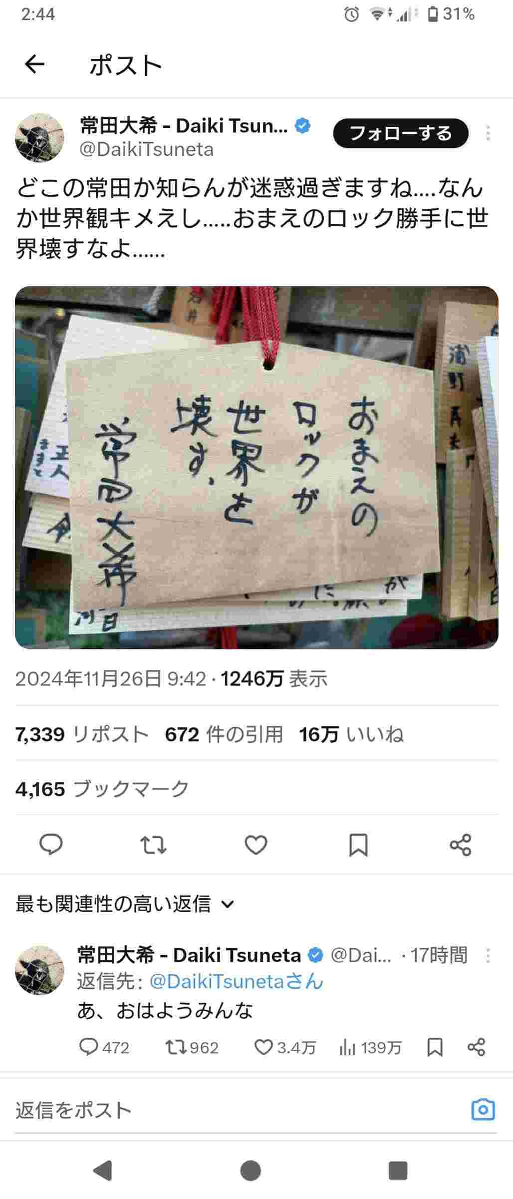 常田大希さん(同姓同名の一般人)に怒り狂う