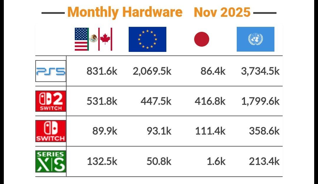 米国の流通小売業の分析を行っているCircanaのシニアディレクター兼ビデオゲーム業界ソートリーダーであるMat Piscatella氏は2025年12月7日,米国でブラックフライデーシーズン中に売れたハードウェアの販売台数トップ3をコメントした。