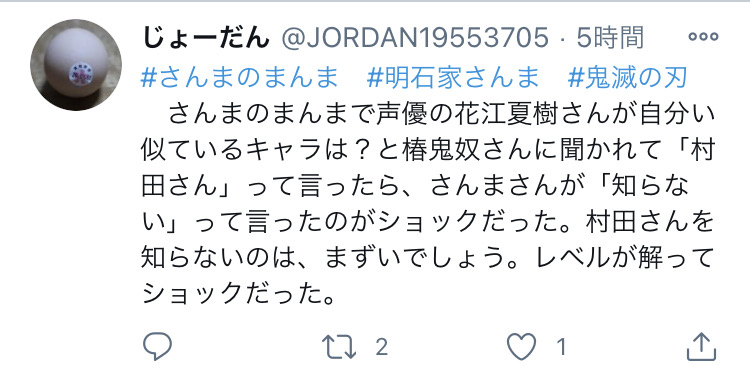 花江「僕は村田さんですね、僕が鬼滅の世界に行ったらあんな感じだと思いますw」