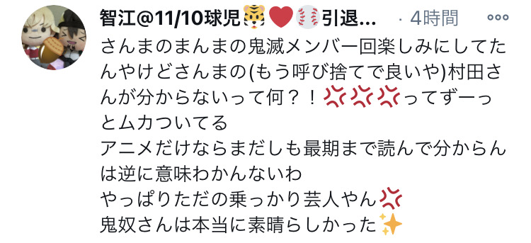 - 鬼滅の煽りスレよく覗くけど村田って名前始めてみたわ
