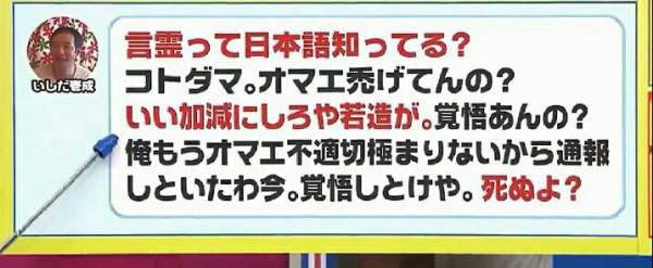 言霊って日本語知ってる?コトダマ。オマエ禿げてんの?いい加減にしろや若造が。覚悟あんの?俺もうオマエ不適切極まりないから通報しといたわ今。覚悟しとけや。死ぬよ?- 2 名前:番組の途中ですが翡翠の名無しがお送りします 投稿日時:2020/04/17(金) 16:26:47.76 ID:REItVqmYd