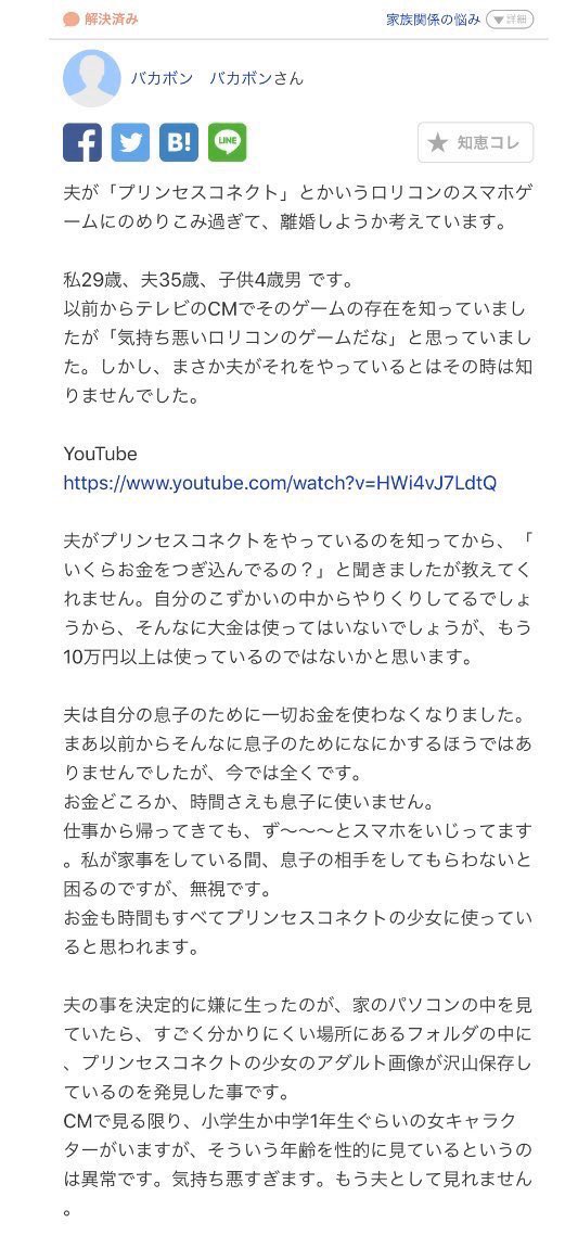 ソレこそプリコネやってんならデレマスの市原仁奈のご両親とやってる事同じと気づかないんかな?ガ●ジ旦那は