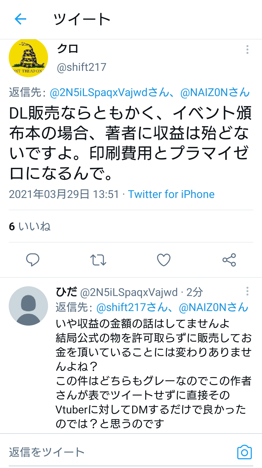 - スパチャに文句付けて自分に金入らんとか言ってるけど同人自体版権元に一銭も入らん事わかっとるんか?