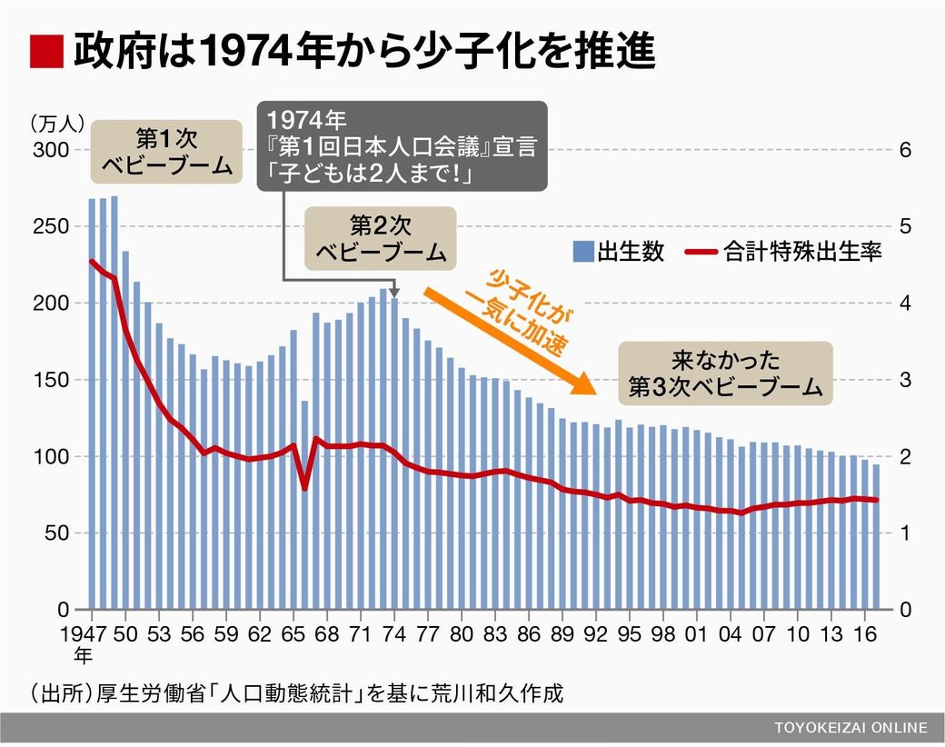 さらに、1974年7月に実施された「第1回日本人口会議」(国立社会保障・人口問題研究所)では、増えすぎる人口を問題視し、「子どもは2人まで」という宣言を出しています。 - 2 名前:番組の途中ですが翡翠の名無しがお送りします 投稿日時:2021/02/21(日) 19:31:22.96 ID:hOjNOr/20