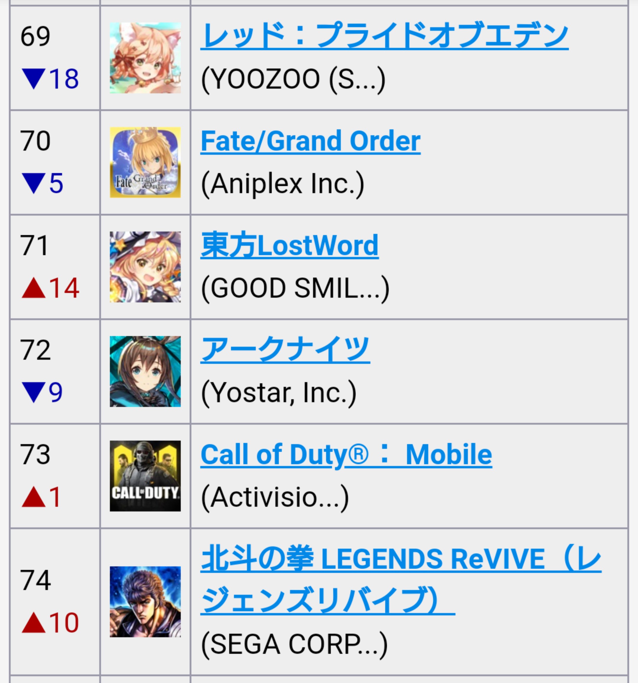 【悲報】FGOさん終わる、セルラン70位まで落ちてしまう