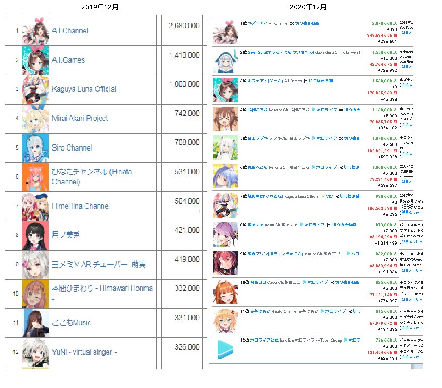 【悲報】Vtuber登録者ランキング、たった一年でとんでもないことになる