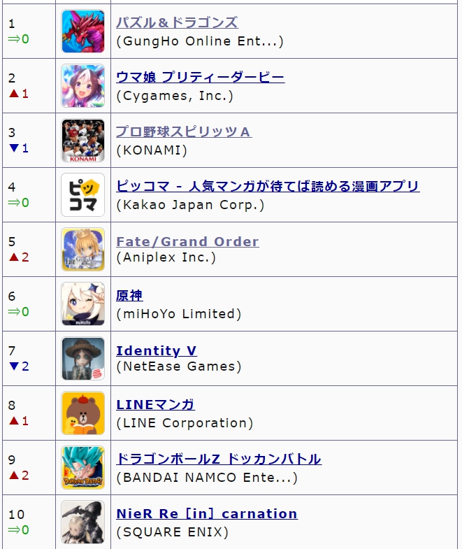 - 【朗報】最新ソシャゲセルラン 1位パズドラ、10位NieR、11位プリコネ、15位モンスト、46位プロセカ
