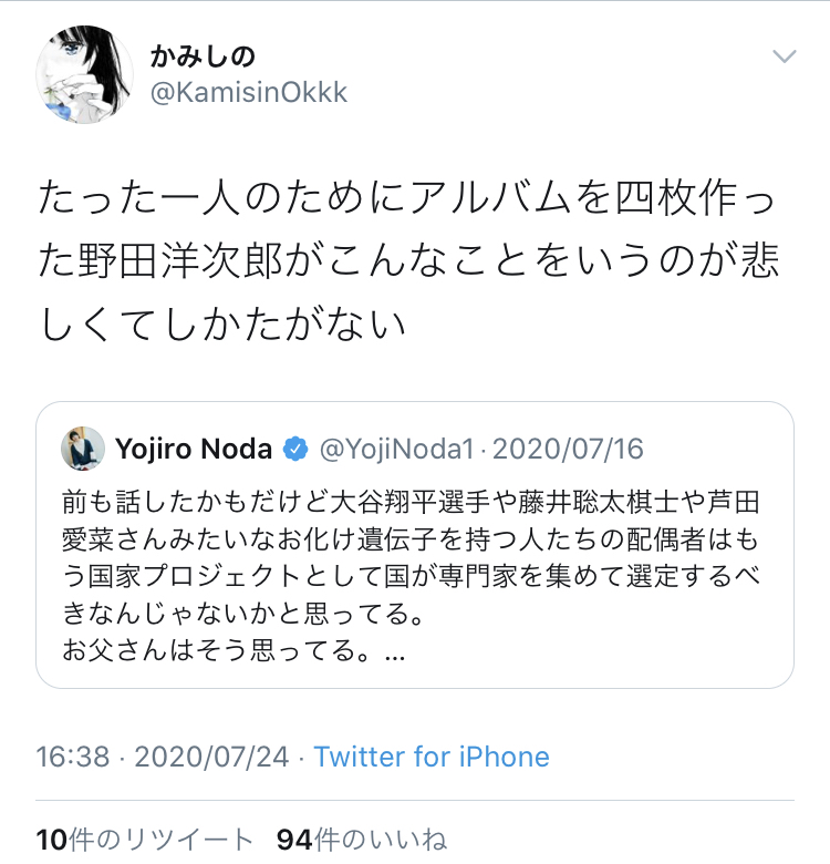 https://twitter.com/yojinoda1/status/1283752963052167169- 2 名前:番組の途中ですが翡翠の名無しがお送りします 投稿日時:2020/07/25(土) 08:03:50.67 ID:i38FffXq0