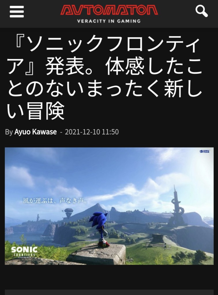 - ソニックのスピードでオープンワールド出来たら割と楽しそうな気がする