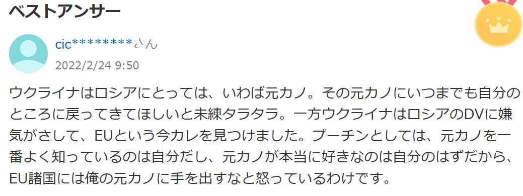 「ウクライナはロシアにとっていわば元カノです」 小学生にも分かるレベルでめっちゃバズる。