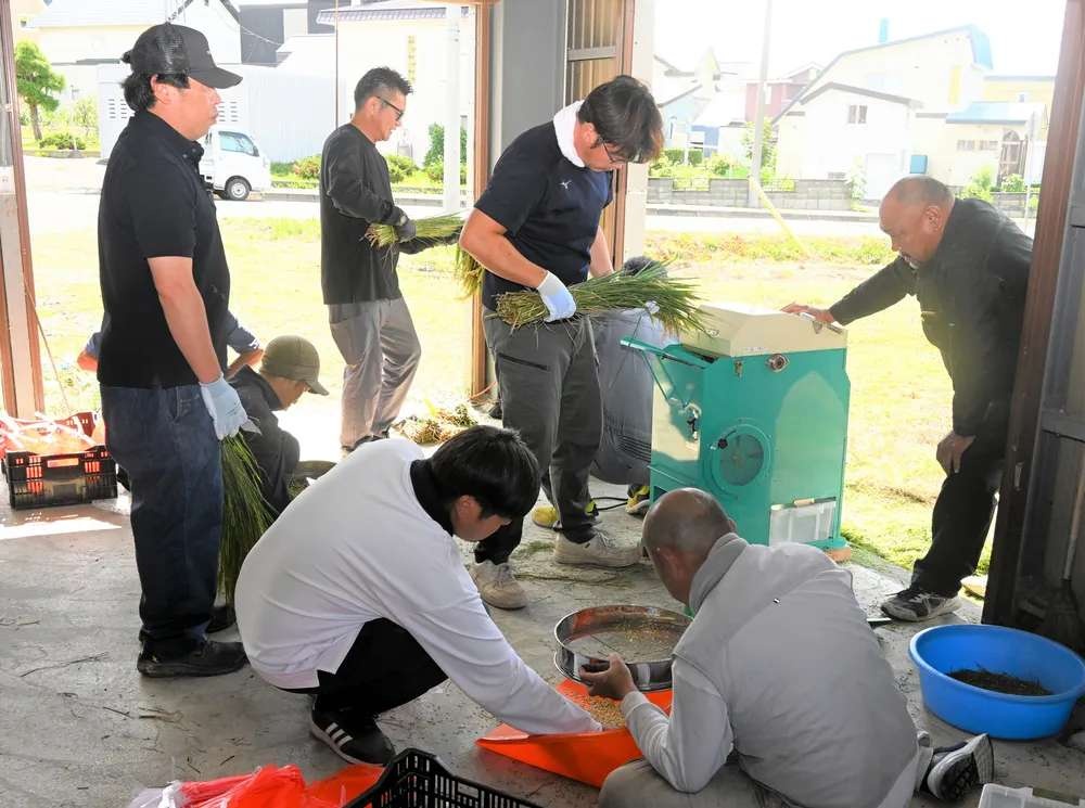 コメ収穫時期見極めへ稲脱穀 名寄 例年より2週間早く実施