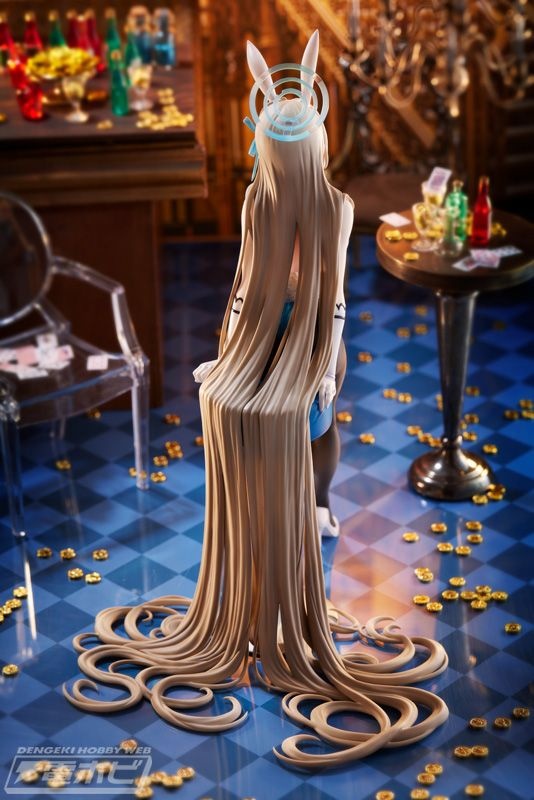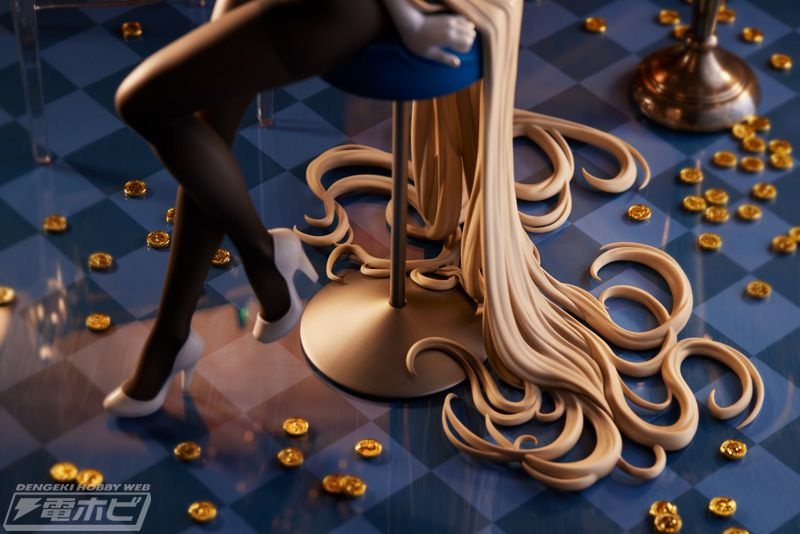 『ブルーアーカイブ -Blue Archive-』より、「一之瀬アスナ(バニーガール)」が1/7スケールフィギュア化。イラストレーター・POPQN氏の画風が忠実に再現されています。テーブルに座っているアスナの魅惑的な目つきや胸元に差しているカードなど、セクシー要素満載! スリムな体と健康的な太もものラインも徹底再現されています。また、質感たっぷりのテーブルに飾られている金貨とカードは、高級感あるムードを演出。原作イラストとはまた違った、別の魅力溢れるGame Playing Ver.の一之瀬アスナ(バニーガール)をお見逃しなく!