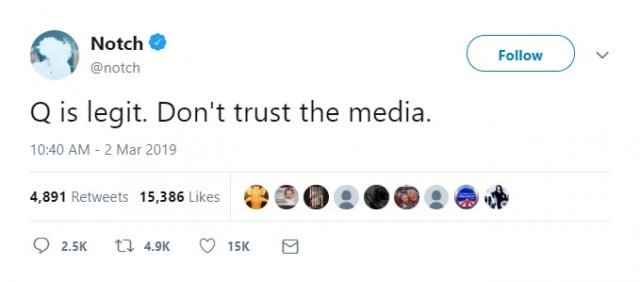 【悲報】マイクラで成功して1000億円の資産を築いたゲーム開発者Notchさん、トランプ支持でQAnon信者の陰謀論者に成り果てていた