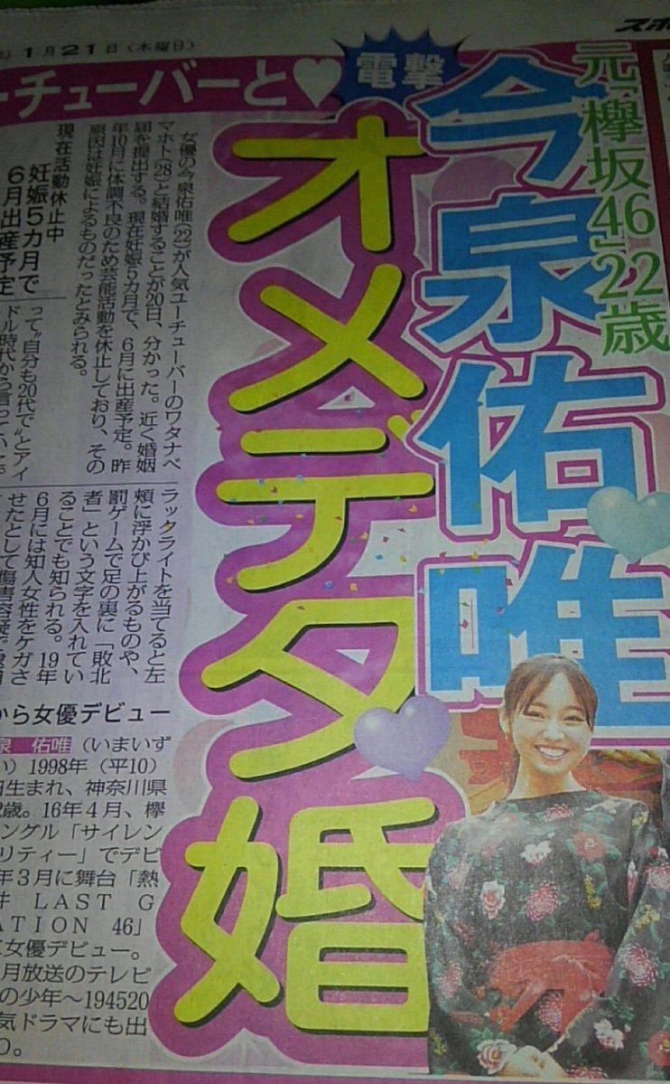 2020年 今泉佑唯 2021年に結婚予定- 12 名前:番組の途中ですが翡翠の名無しがお送りします 投稿日時:2021/01/21(木) 07:15:29.26 ID:HPXKN8wv0