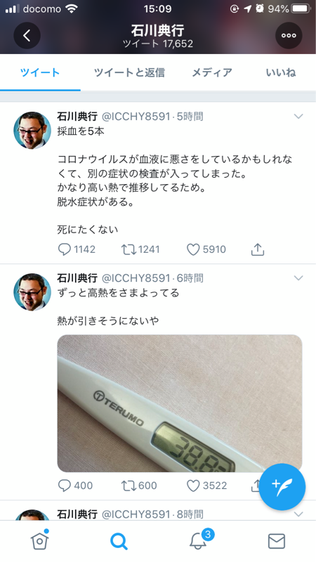 - 誰だか知らんけど数日前まで舐めてたのに陽性と分かった途端に死にたくないって言ってんのが