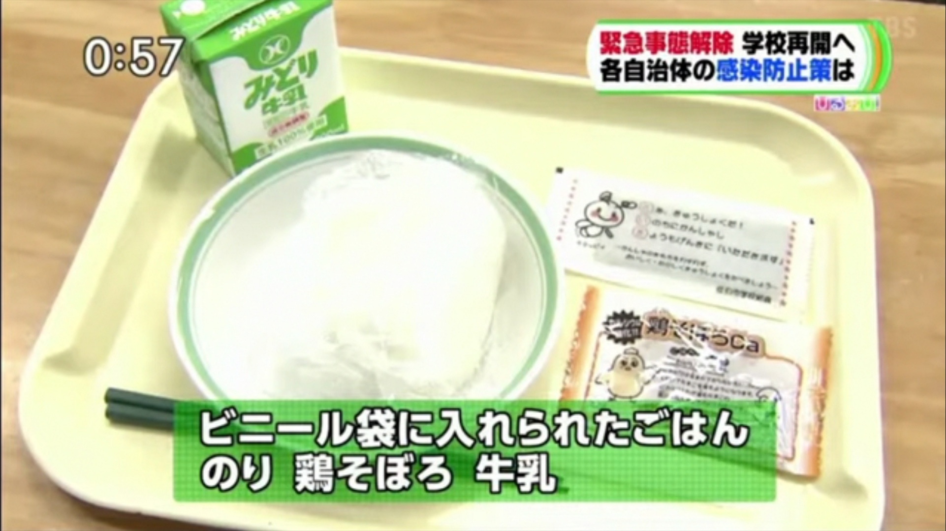 - うちの子の学校からのお知らせに「パンと牛乳程度の給食」って書いてあったから、これと同じような給食になりそう