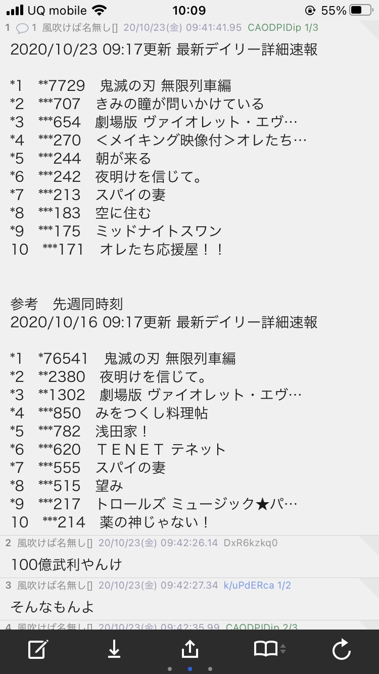 AEON系のサーバが応答せず、本日はほぼ全ての上映回での取得が出来ていません。 - 36 名前:番組の途中ですが翡翠の名無しがお送りします 投稿日時:2020/11/05(木) 08:42:49.23 ID:qnQmrDGe0