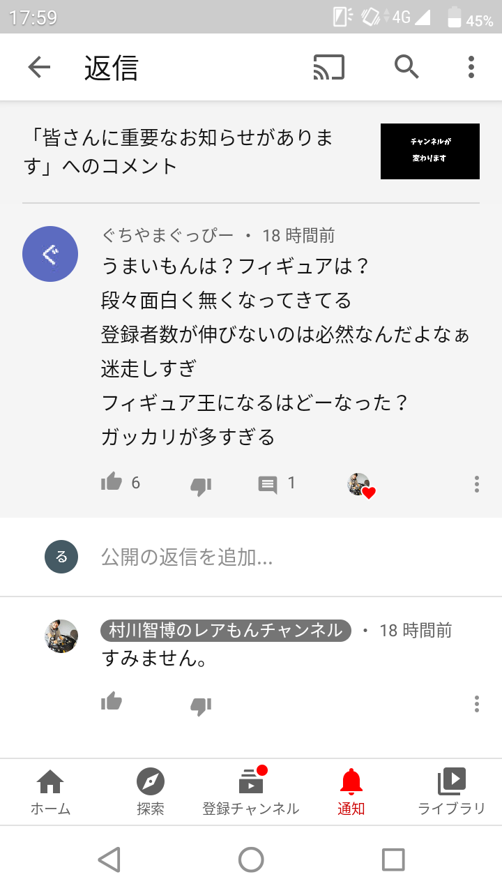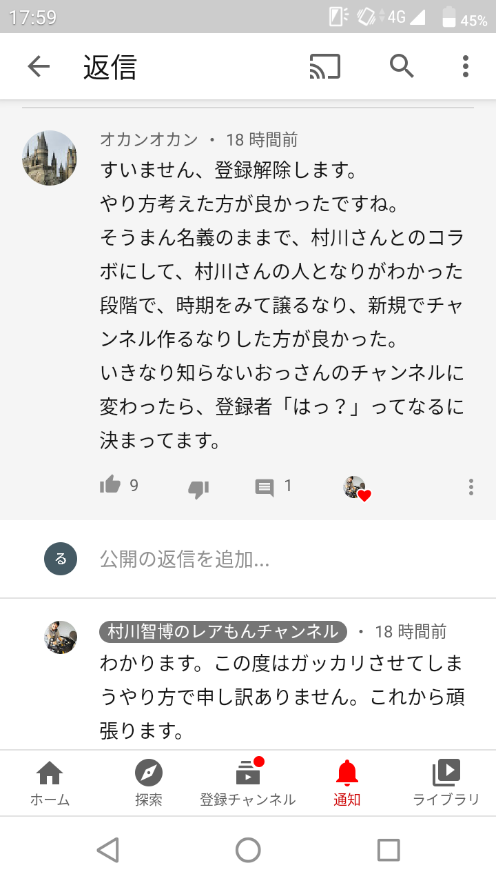 これ突然猫動画のチャンネルがオッサンチャンネルになるようなもんやからな