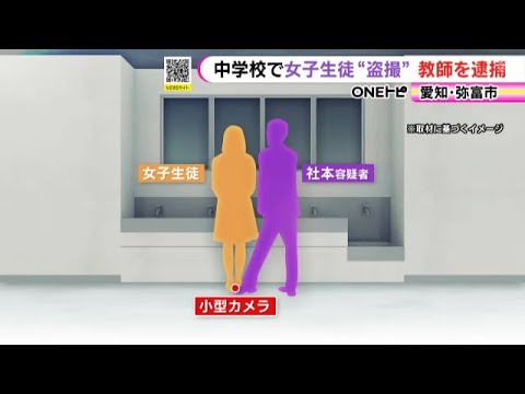2023.06.28(Wed)愛知県警蟹江署は28日、勤務する中学校で女子生徒を盗撮しようとしたとして、県迷惑行為防止条例違反の疑いで、