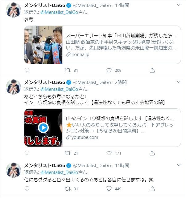 【朗報】メンタリストDaiGoさん、「オウム返し」と「人格否定」だけで米山隆一に完全勝利してしまう