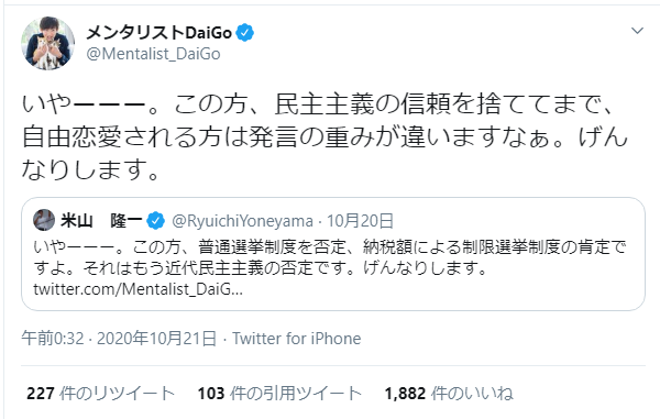 ひろゆきが勝手にDAIGOの負け判定してDAIGO煽ってたぞ