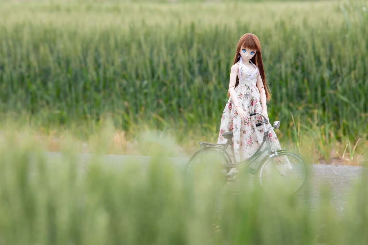 【画像】麦わら帽子にワンピースの美少女、ヤフオクで自転車を購入し、自宅裏の麦畑を走る