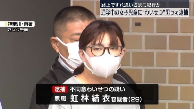 警察によりますと、虹林結衣容疑者は先月、横浜市南区の路上で小学2年生の女子の下半身を触るなどのわいせつな行為をした疑いがもたれています。