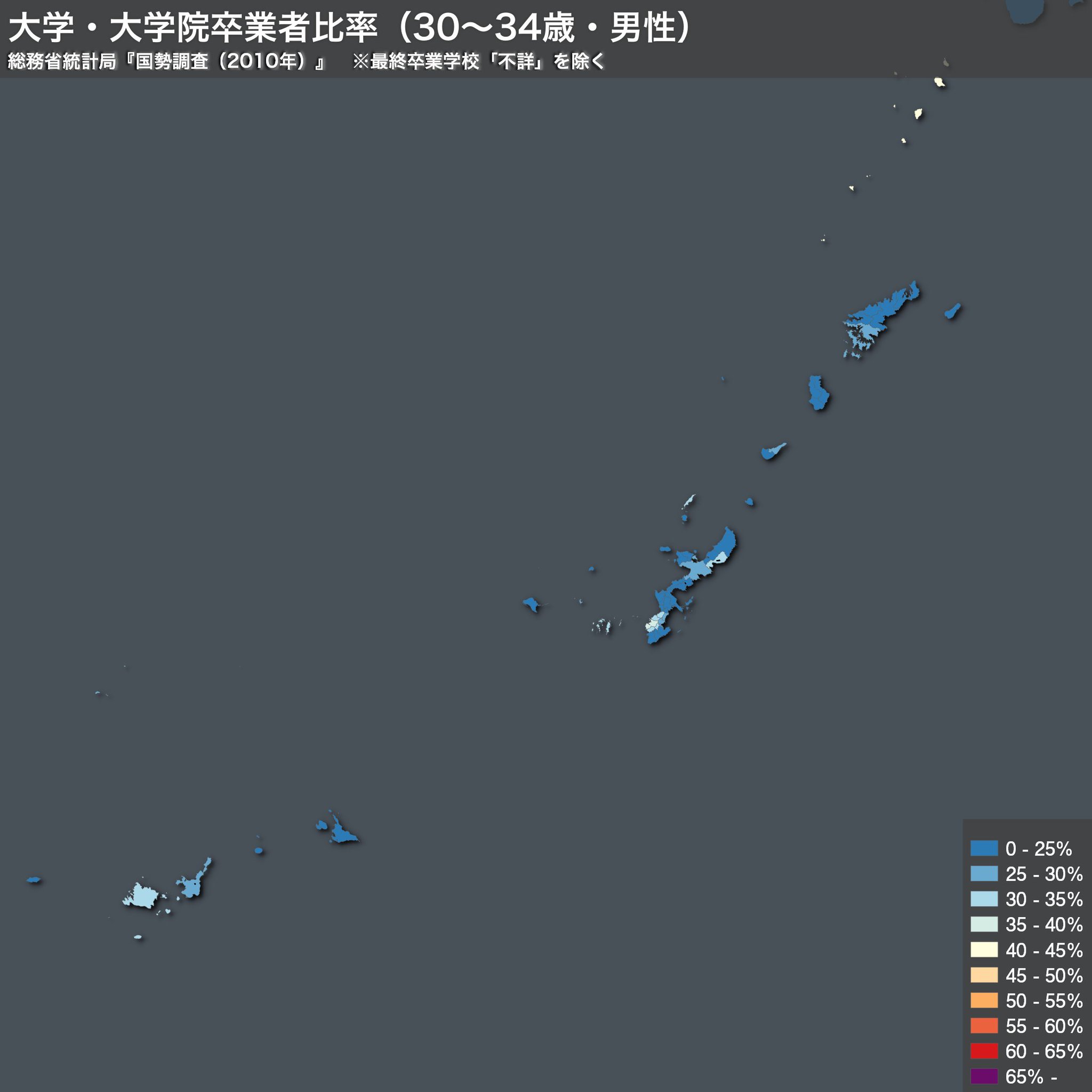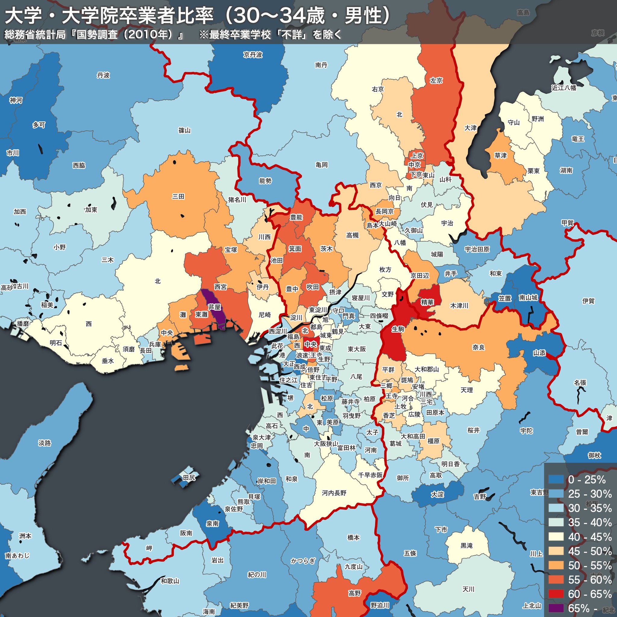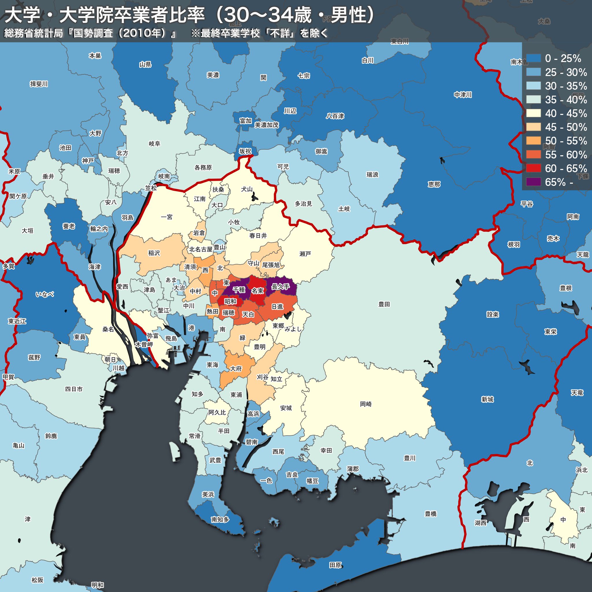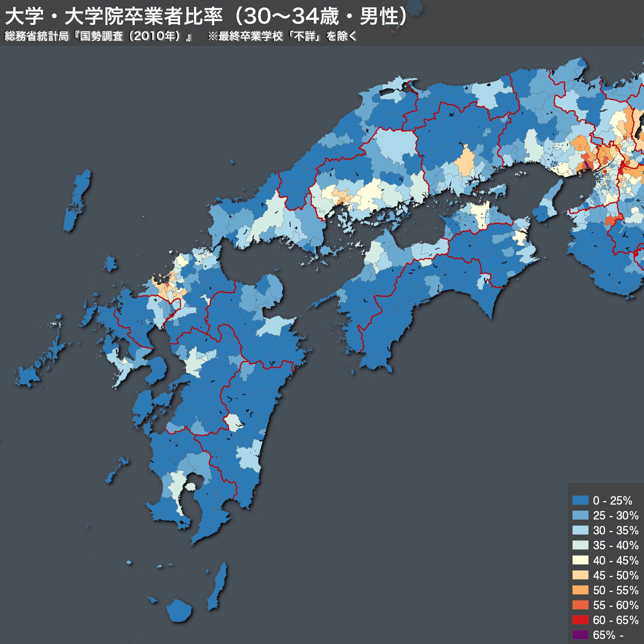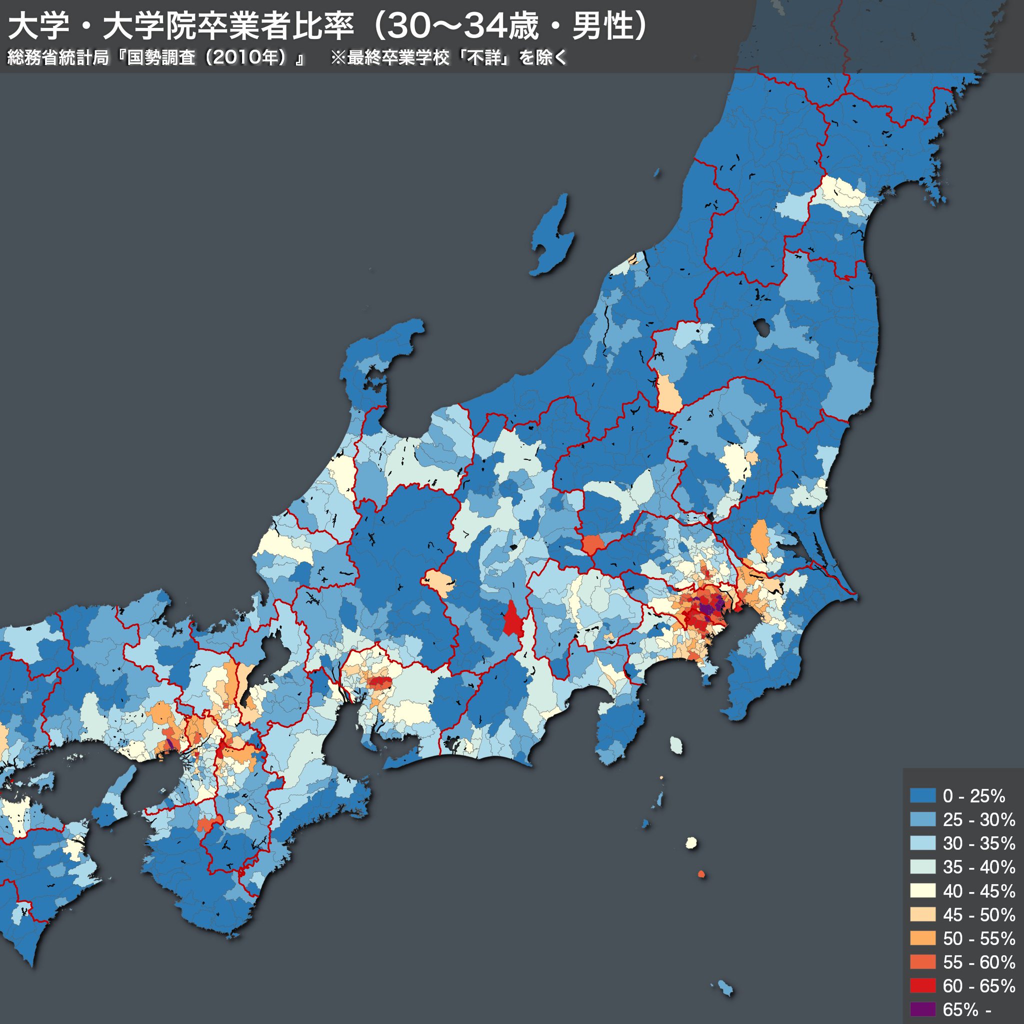 2010年調査で30~34歳ではまだ地方の大学進学率が低いだろう