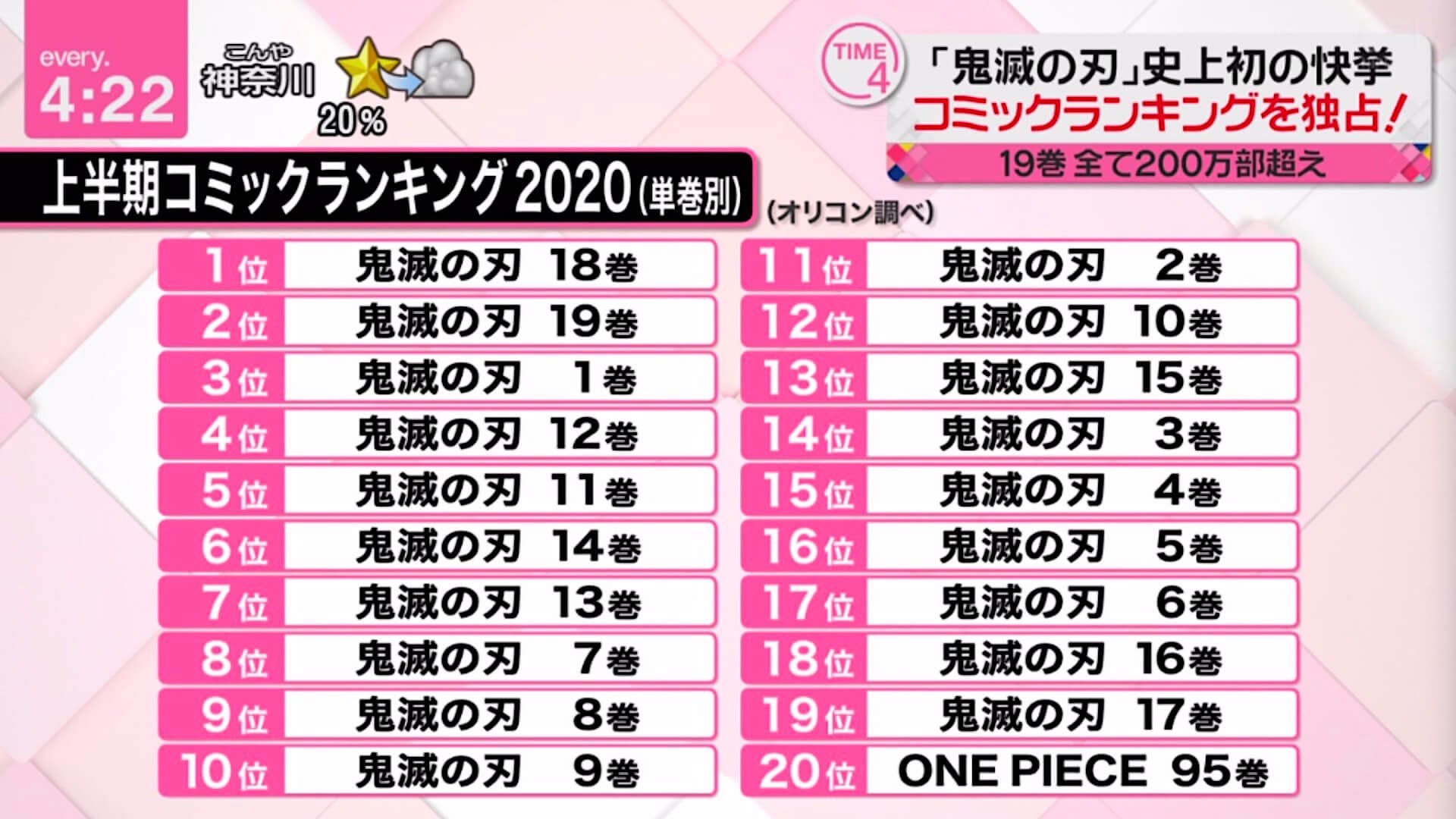 何百万も売るって嘘ついてるワンピより鬼滅の4巻のが売れるんだな