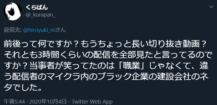 VTuberの清掃員差別発言に苦言を呈す論破王