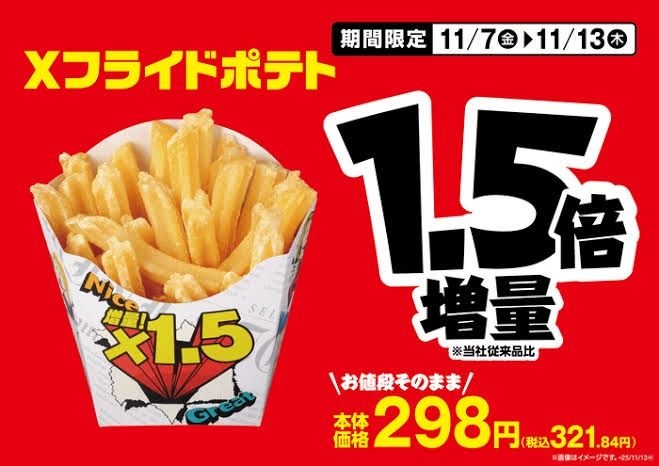 ミニストップは、価格はそのままに総重量や具を増量するフェアを、「ミニストップがデカストップに!?」と題して11月4日より順次開始した。おにぎりや弁当のほか、Xフライドポテト1.5倍、ホットドッグ(ダブルウインナー)などを用意する。増量期間は商品により異なる。