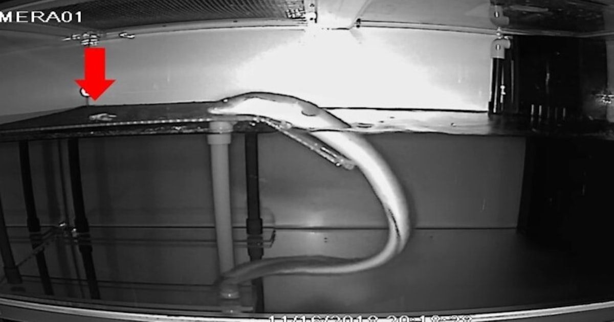 研究チームは奄美大島で採集したオオウナギ10匹を対象に、陸地を設けた水槽で観察実験をした。生きたコオロギを陸地に入れると、ウナギが陸に上がって捕食していた。それぞれのウナギを約200時間にわたって観察したところ、陸上に出る行動が計3713回見られ、捕食に42回成功していた。