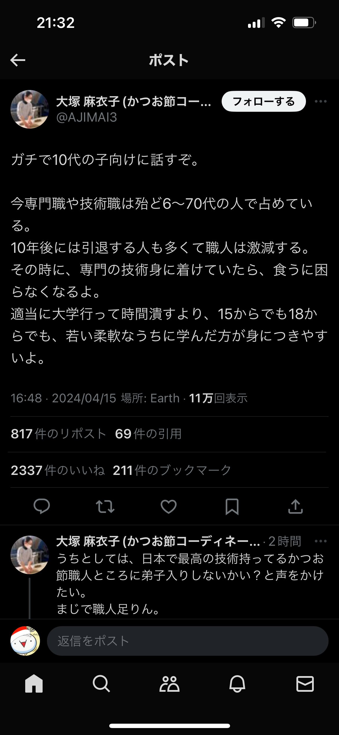 かつお節職人「10代の子へ。適当に大学なんか行くより、マジで専門職や職人になった方がいい」