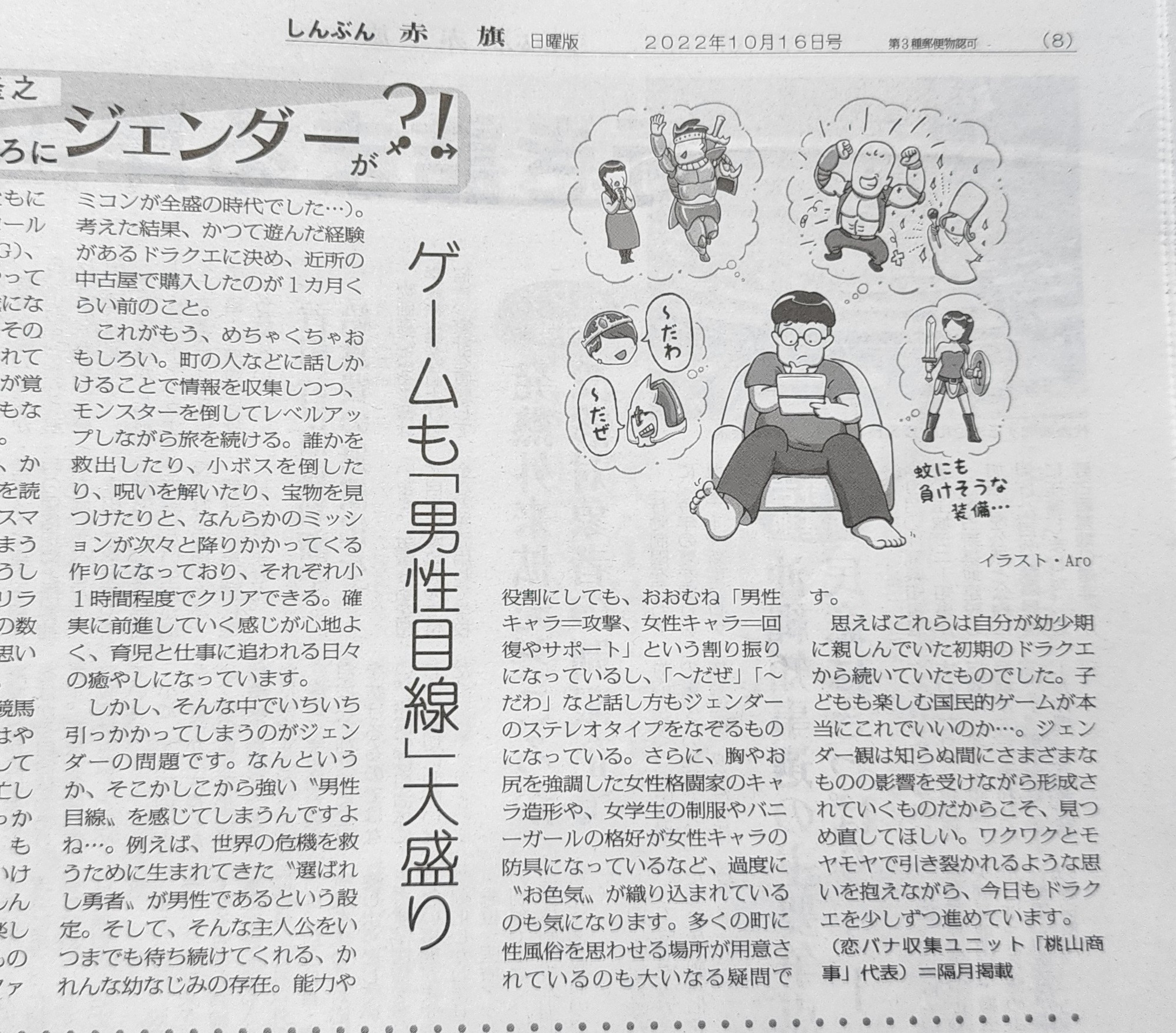 しんぶん赤旗「ドラゴンクエスト」から強い”男性目線”を感じる。勇者が男性で女性がサポート役。ジェンダーのステレオタイプ」