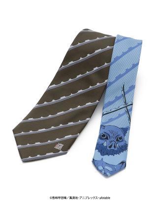 禰豆子と善逸も同じく羽織や着物の柄をネクタイ風にアレンジ。半裸の伊之助はというと、特徴的な日輪刀をストライプとして取り入れています。小剣には各キャラクターのイラストがプリントされており、さりげなく存在感をアピールできるデザインです。