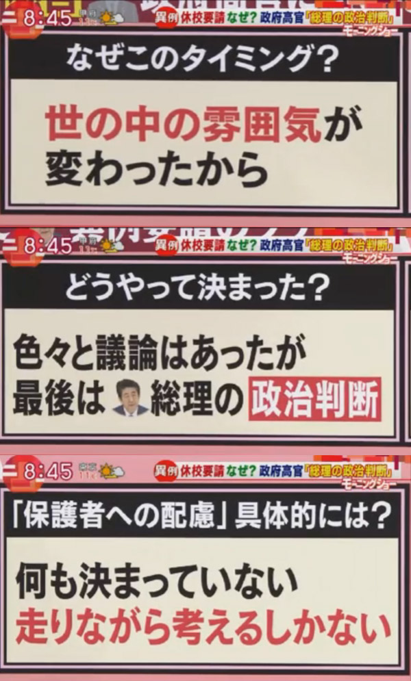 なぜこのタイミングで休校? 政府高官「世の中の雰囲気が変わったから」 「具体的には何も決まってない。走りながら考える」